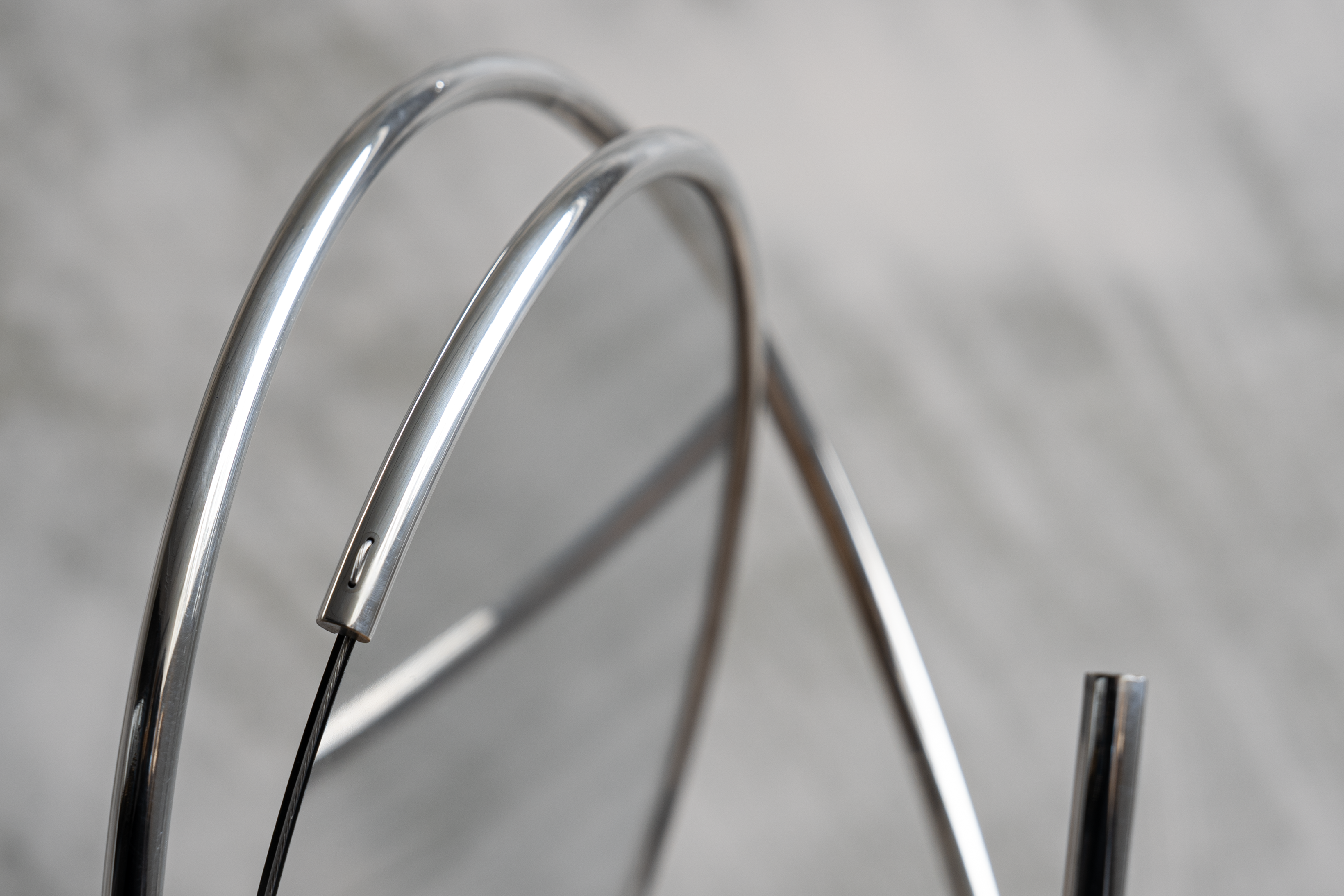 連続するスプリング形状はユニークなスタイリングと同時に、鏡を保護する外骨格となる役割もあります。